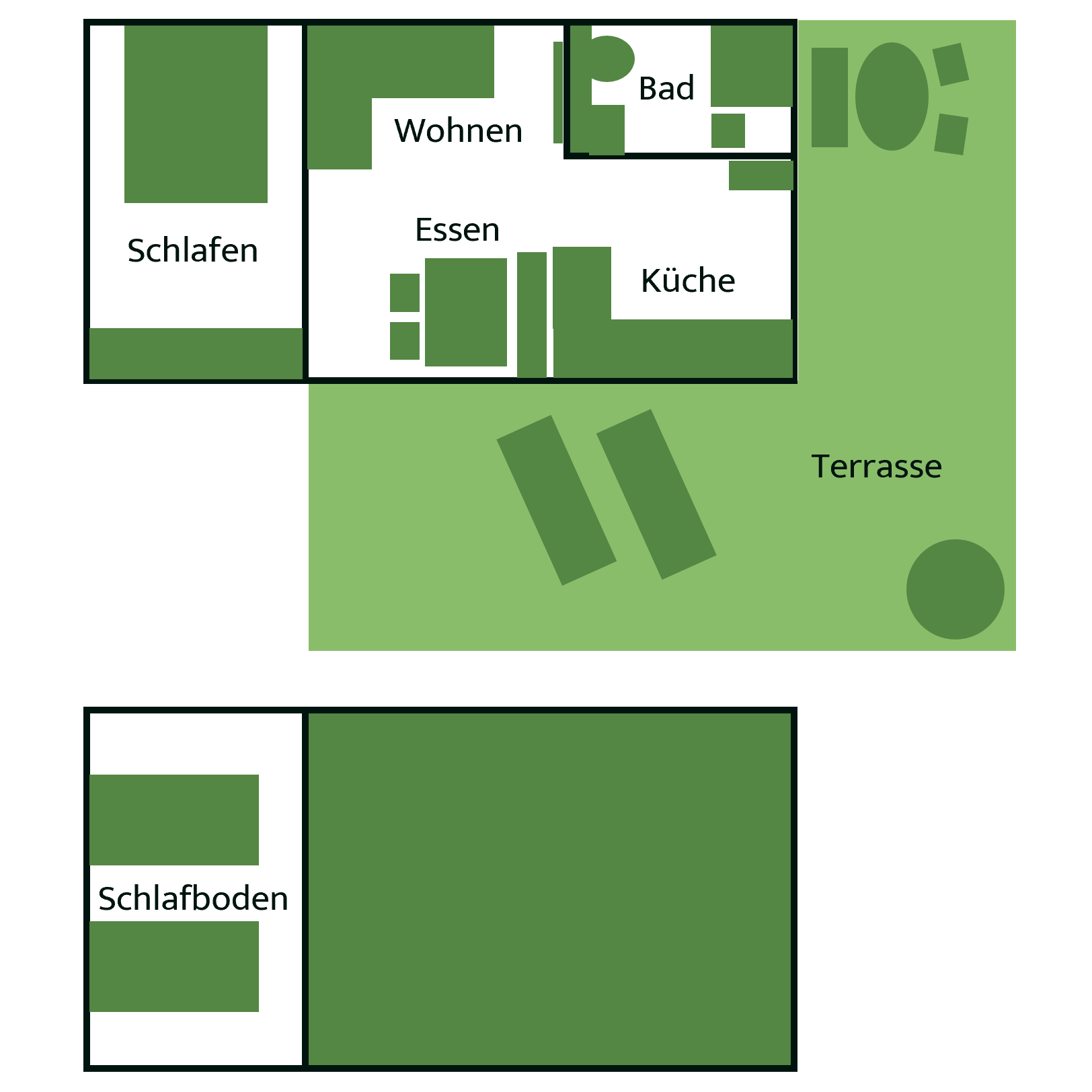 ca. 30m² Wohnfläche und 35m² Terrassenfläche